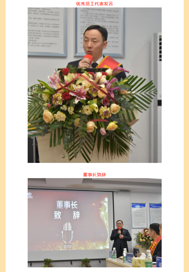 年會開始,董事長上臺致辭,共同回顧過去一年的辛勤與收獲,展望未來的機(jī)遇與挑戰(zhàn)。過去一年,全體員工團(tuán)結(jié)協(xié)作,攻堅(jiān)克難,取得了令人矚目的成績。董事長代表公司管理層,向每一位辛勤付出的員工表示衷心的感謝和崇高的敬意。希望未來,繼續(xù)發(fā)揚(yáng)拼搏精神,共創(chuàng)更加輝煌的明天。最后,對全體員工表達(dá)了真摯的新年祝福。